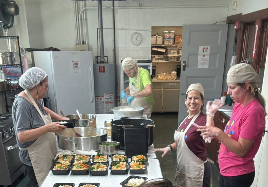 The main focus is preparing and serving hot meals — usually pasta with meat or vegetables — along with water, juice, coffee, and dessert. Volunteers serve thousands of meals every year and also provide clothing and blankets to those in need.